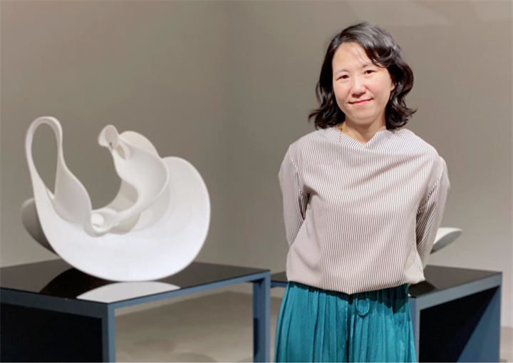 許芝綺的雕塑作品以純白、抽象、有機與優雅的線條為人所知,她選擇以土作為創作媒材 。在創作的過程中,從練土、搓揉土條到塑形,再到燒製打磨,都是藝術家與自身和環境的對話。她認為在人生中遇到無法回避的重量時,僅能用嘴角蜿蜒的線條和內在撐起的表面張力去承接。兩者弧線交錯而成無限大的可能性,作品的翻轉如同視角的改變,也是另一種解套的可能。不同角度承接了飽滿的光影,渲染出千變萬化的光澤,從每個角度觀看都有不同形貌,帶領觀眾進入她精心構筑的世界。